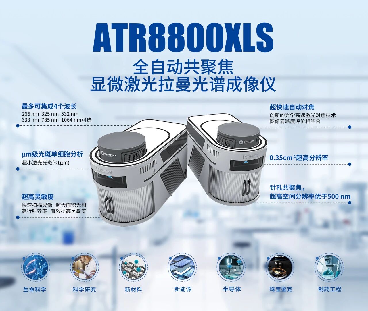 依托高自動化、高精度與高穩定性的綜合優勢,ATR8800XLS可廣泛應用于納米材料與新材料研究、生物科學、法醫學鑒定、材料科學、醫學免疫分析、農業及食品安全檢測、寶石及礦物鑒定等多個領域。
