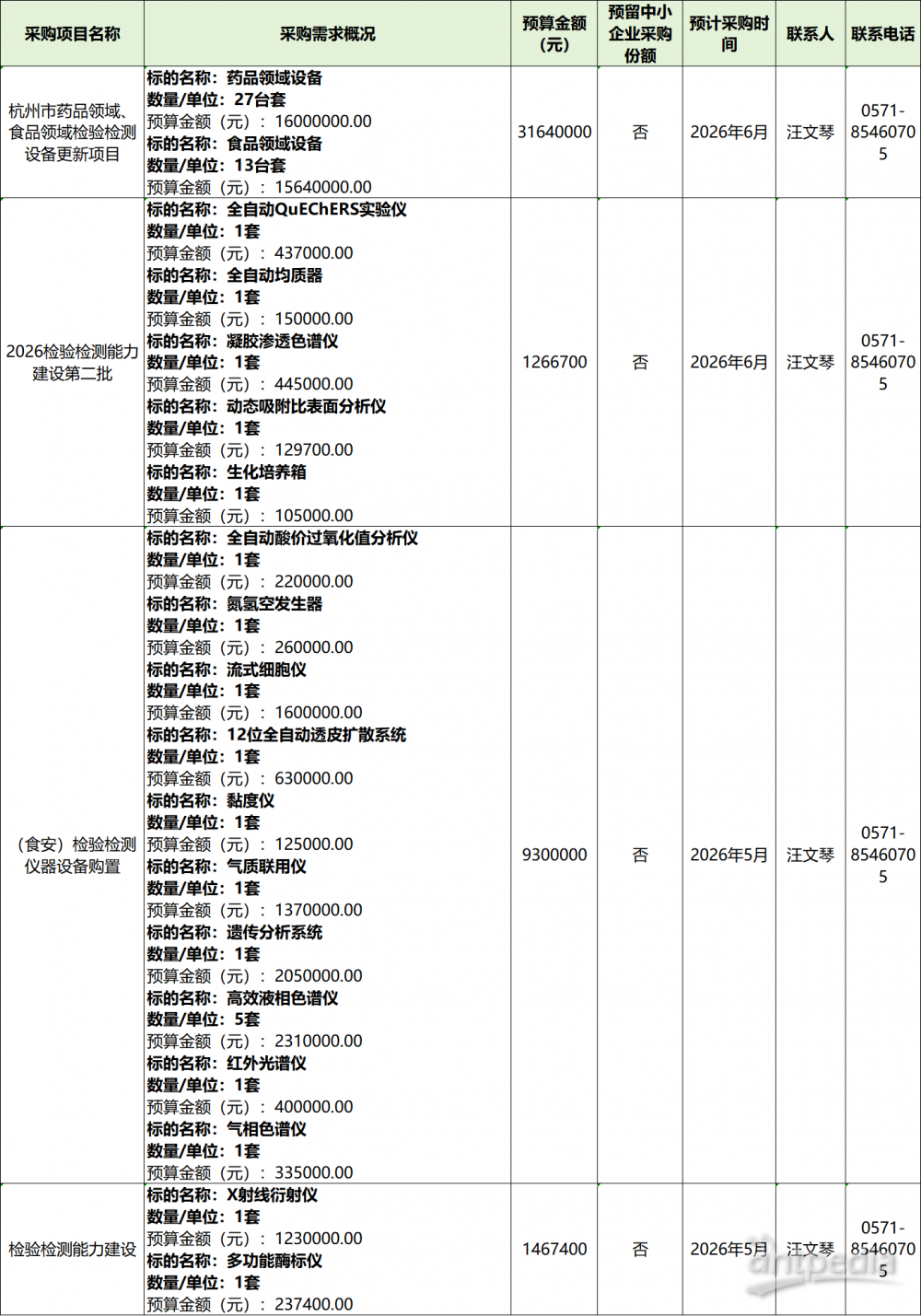4367.41萬元擬采購61套儀器設(shè)備,杭州食藥檢